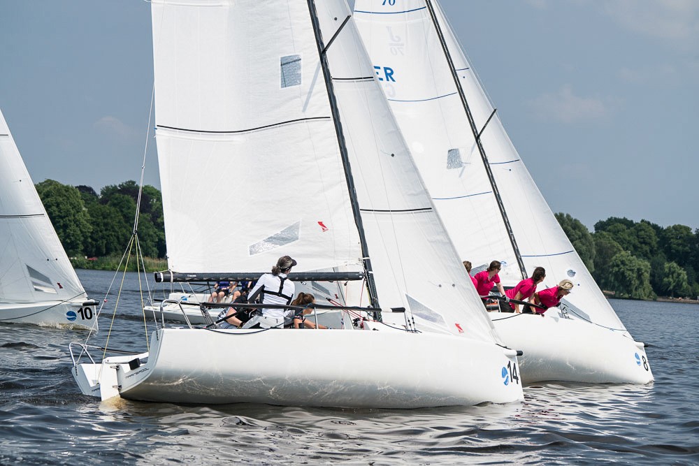 Helga Cup heißt ‚Segeln für alle‘ und das möglichst einfach – also ohne den sonst üblichen großen finanziellen, zeitlichen und logistischen Aufwand. Die Boote werden gestellt, so dass die Teilnehmerinnen nur mit ihren Segeltaschen nach Hamburg anreisen, das Boot bleibt daheim. Kein aufwändiges Verpacken, keine langwierige Anreise mit Hänger und maximal 100 km/h.