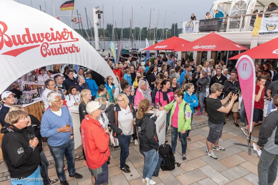 Die Abendveranstaltungen, die Versicherung der Regattaboote, die Trainingsbegleitung, der Auf-und Abbauservice wurden 2018 durch Sponsoren, das Sportamt der Stadt Hamburg und eine Stiftung finanziert. So minimieren wir den finanziellen Aufwand für die Seglerinnen auf ein Maß, das kein endlos riesiges Loch in der Crew-Kasse hinterlässt.