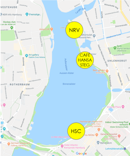 Zuhause ist der Helga Cup im Norddeutscher Regatta Verein r.V. Revier Alster mitten in der Milionenmetropole Hamburg. Der NRV ist einer der ältesten und erfolgreichsten Segelclubs in Deutschland.